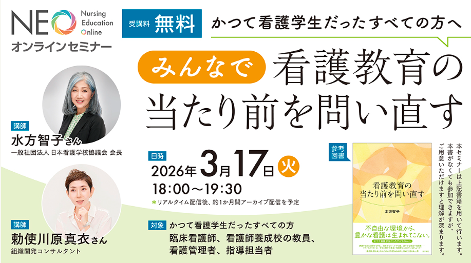 「当たり前を問い直す」視点から教育を見つめ直し、そこからどんな変化を生み出していけるのか。希望ある看護教育の未来を一緒に考える機会として、ぜひご参加ください。